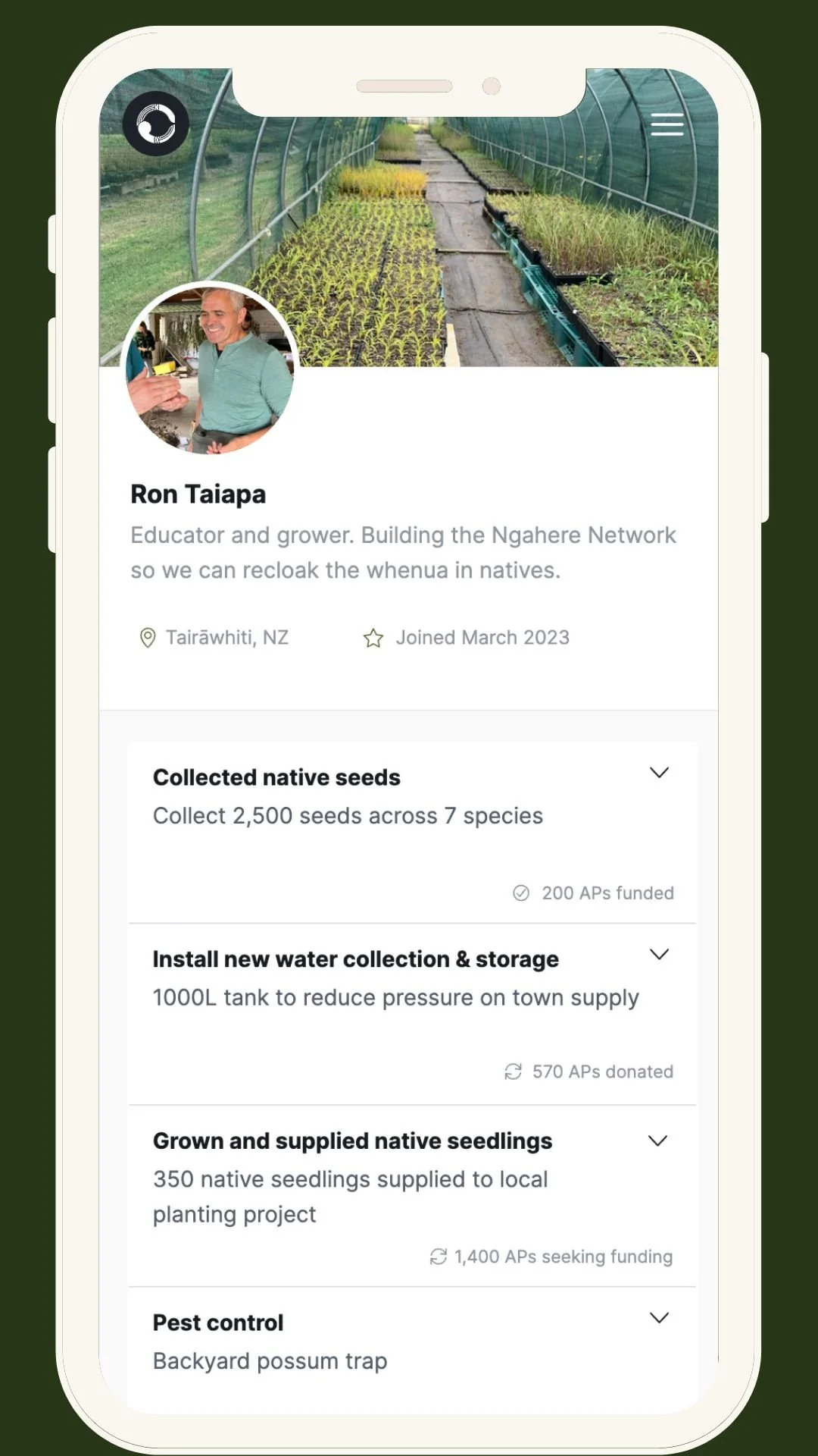 The East Coast Exchange holds a public record of this mahi and allows people to earn Action Points and exchange them for funding.